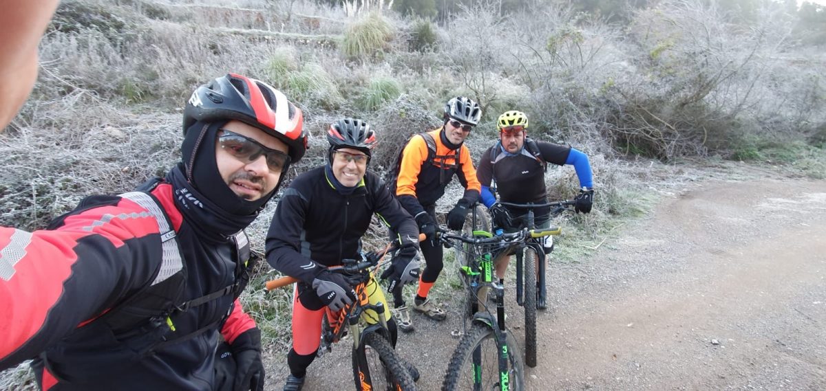 Hoy ha sido una de esas jornadas Bicingueras que algunos recordaremos con el tiempo… fría mañana de invierno en Viladecans, donde Jota, Marco, Isma y Txema han iniciado una ruta cuyo recorrido estaba más o menos planeado. El primer objetivo era la creu del Querol, en la loma que separa SantCliment de Torrelles, así que toca un trozo de asfalto y luego a subir por tierra con alguna que otra pendiente: terreno conocido al fin y al cabo. Por el camino nos hemos puesto al día: Marco nos ha contado que estaba en una etapa de “descanso activo” donde tenía que salir sin pasar de 120ppm… 🤨 yo he pensado en lo que había previsto y no me cuadraba mucho ese rango, pero bueno, siendo Pantani no me extrañaría que tenga el corazón del tamaño del de un toro… 🐃